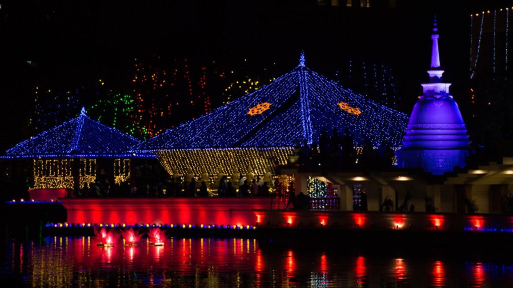 Cities glow with lanterns and illuminated displays called pandols. Free food stalls promote generosity. The mood is peaceful, reflective, and welcoming to visitors.